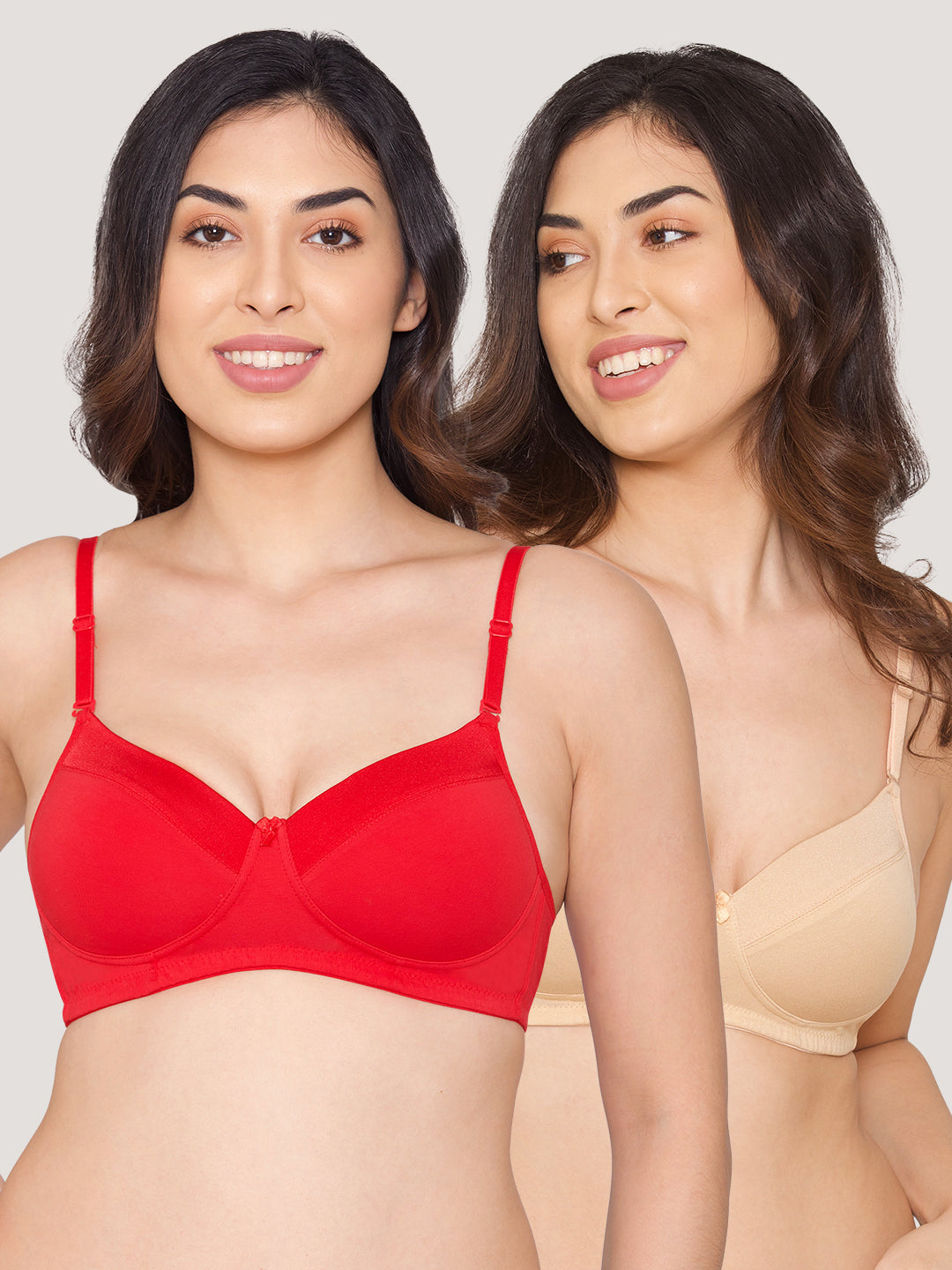 Kalyani Madee Everyday Comfort Elegant Satin Neckline Padded T-Shirt Bras | Pack of 2 | NUDE RED
