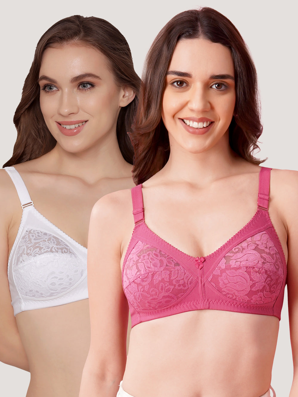 Deepali Non Padded Everyday Lace Bra | Pack of 3-ROSEBUD ROSEBUD ROSEBUD