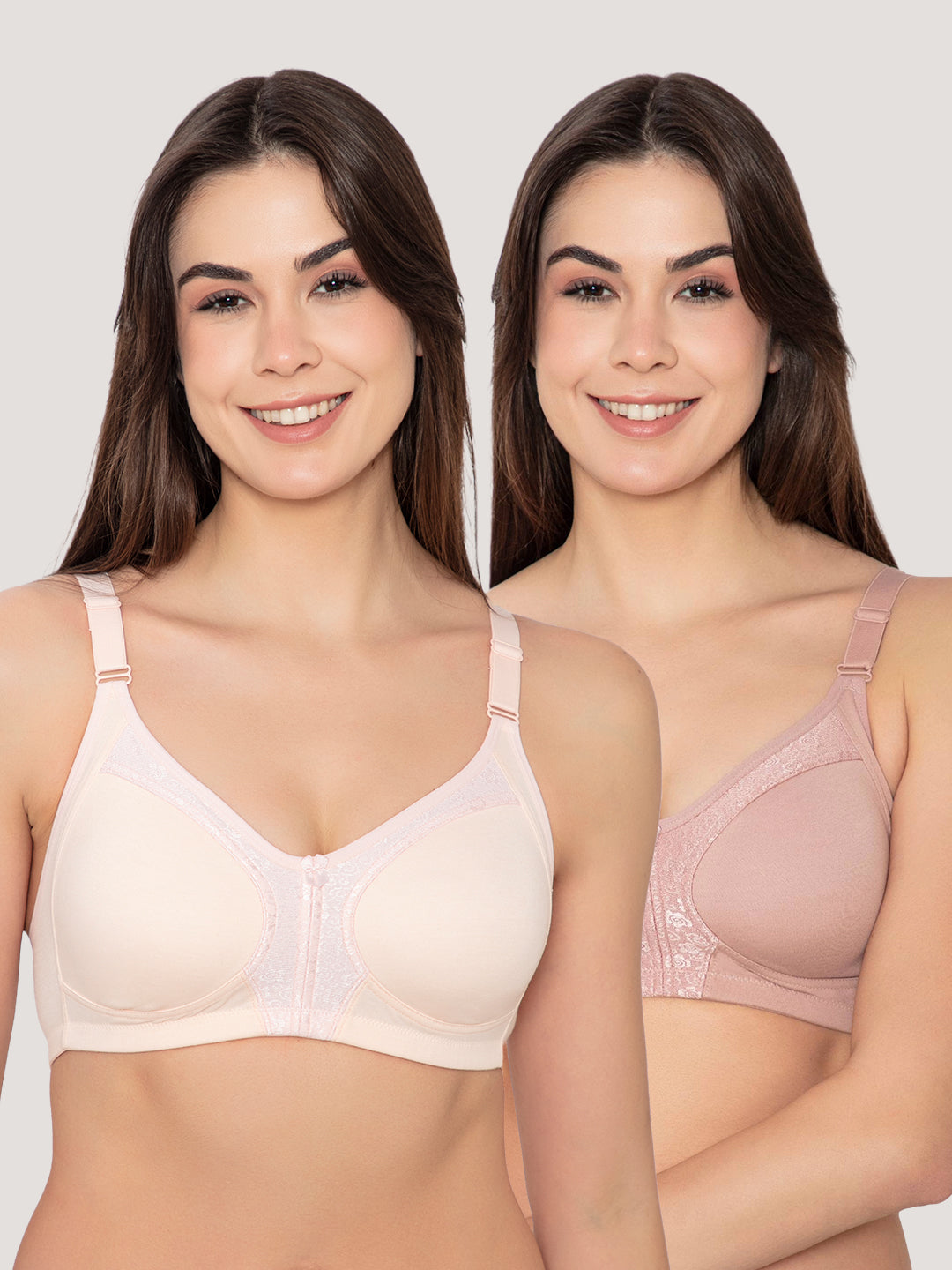 K Lingerie Leona Full Coverage Everyday Lace Bra | Pack of 2-L.PEACH FAWN
