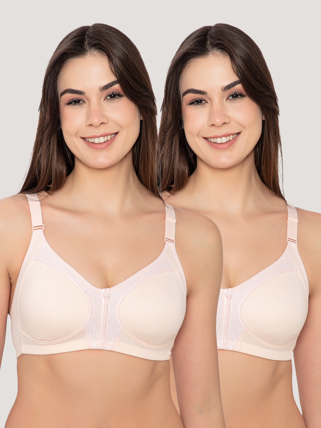 K Lingerie Leona Full Coverage Everyday Lace Bra | Pack of 2-L.PEACH L.PEACH