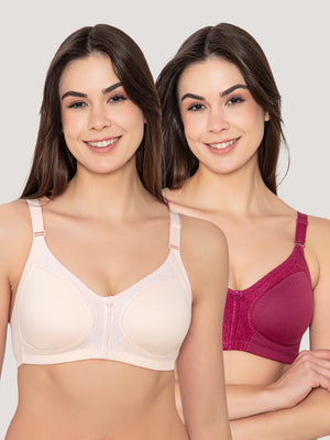 K Lingerie Leona Full Coverage Everyday Lace Bra | Pack of 2-L.PEACH ROSE BUD