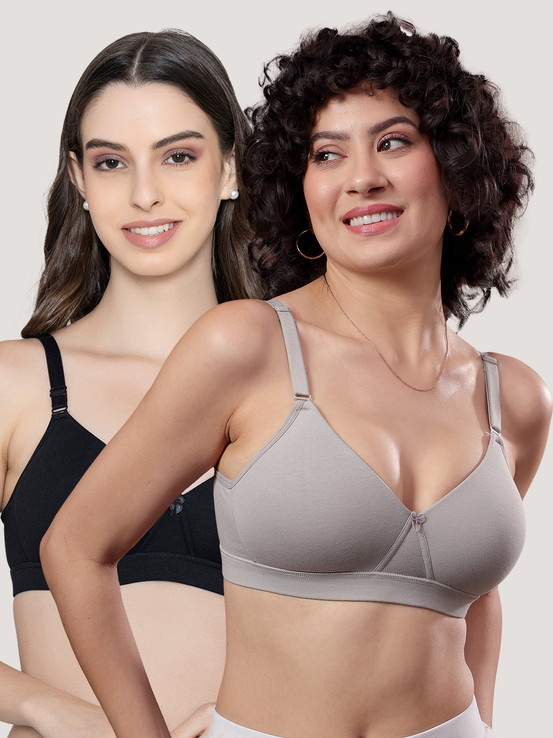 Tessa Full Support Seamless Designer Bra for Women Pack of 2-L.GREY BLACK
