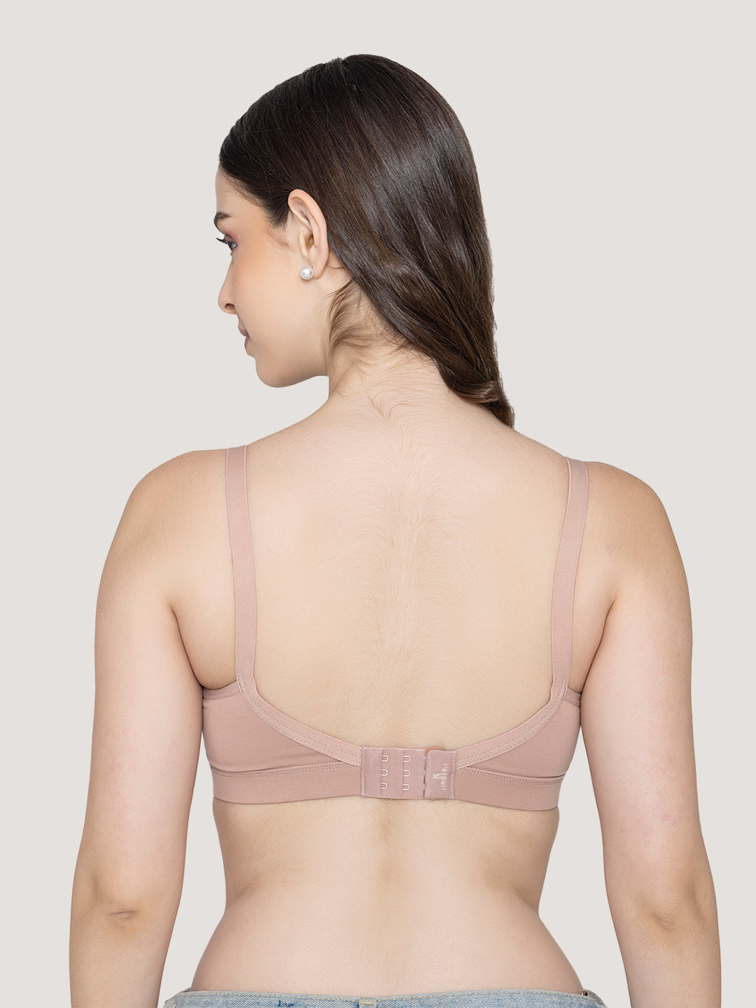 Experience the smooth, wrinkle-free look with our Soft Padded Cups, ensuring a seamless appearance under all your outfits. Its seamless design keeps the bra invisible under T-shirts. Adjustable straps allow for various styling options, including cross back and halter neck, and can be replaced with transparent straps. The molded cups prevent nipple show, providing a seamless look.